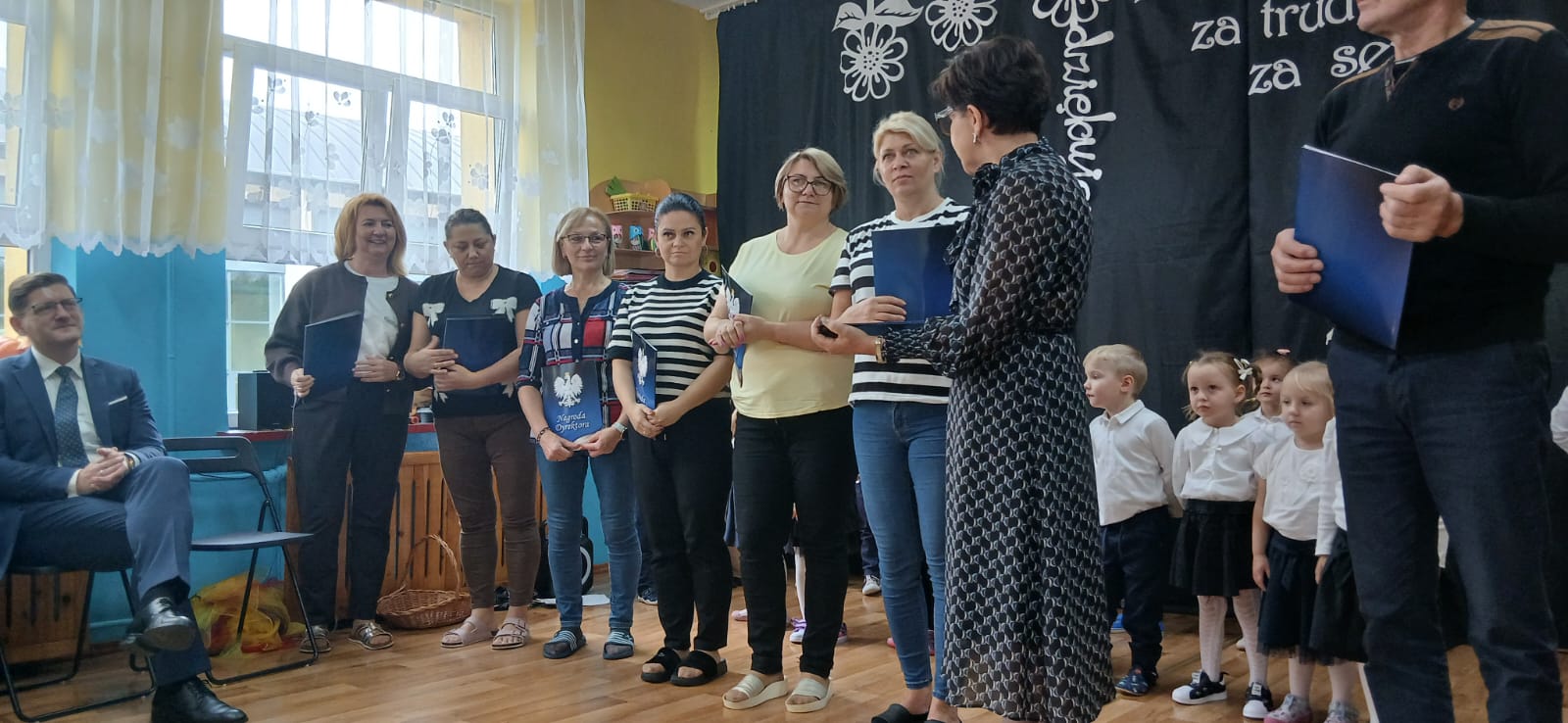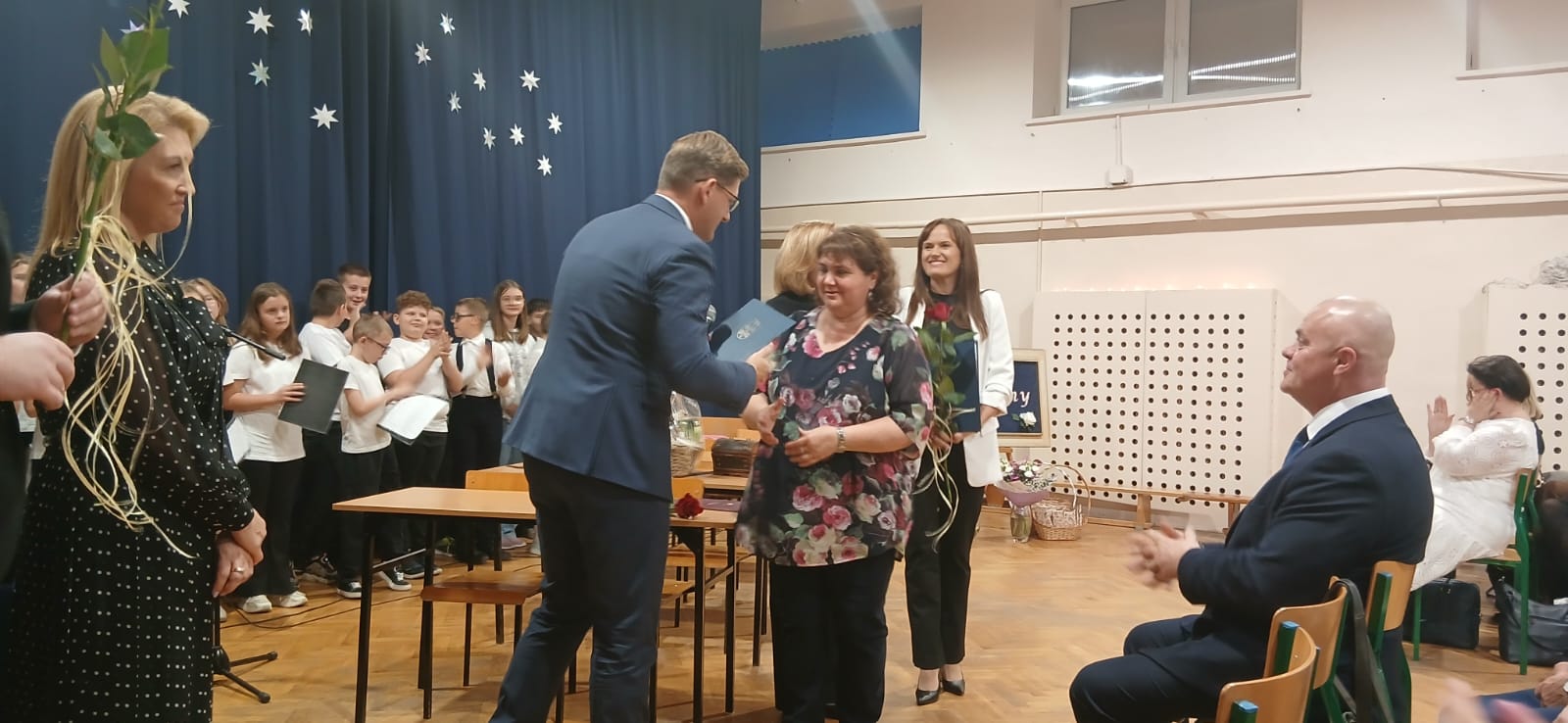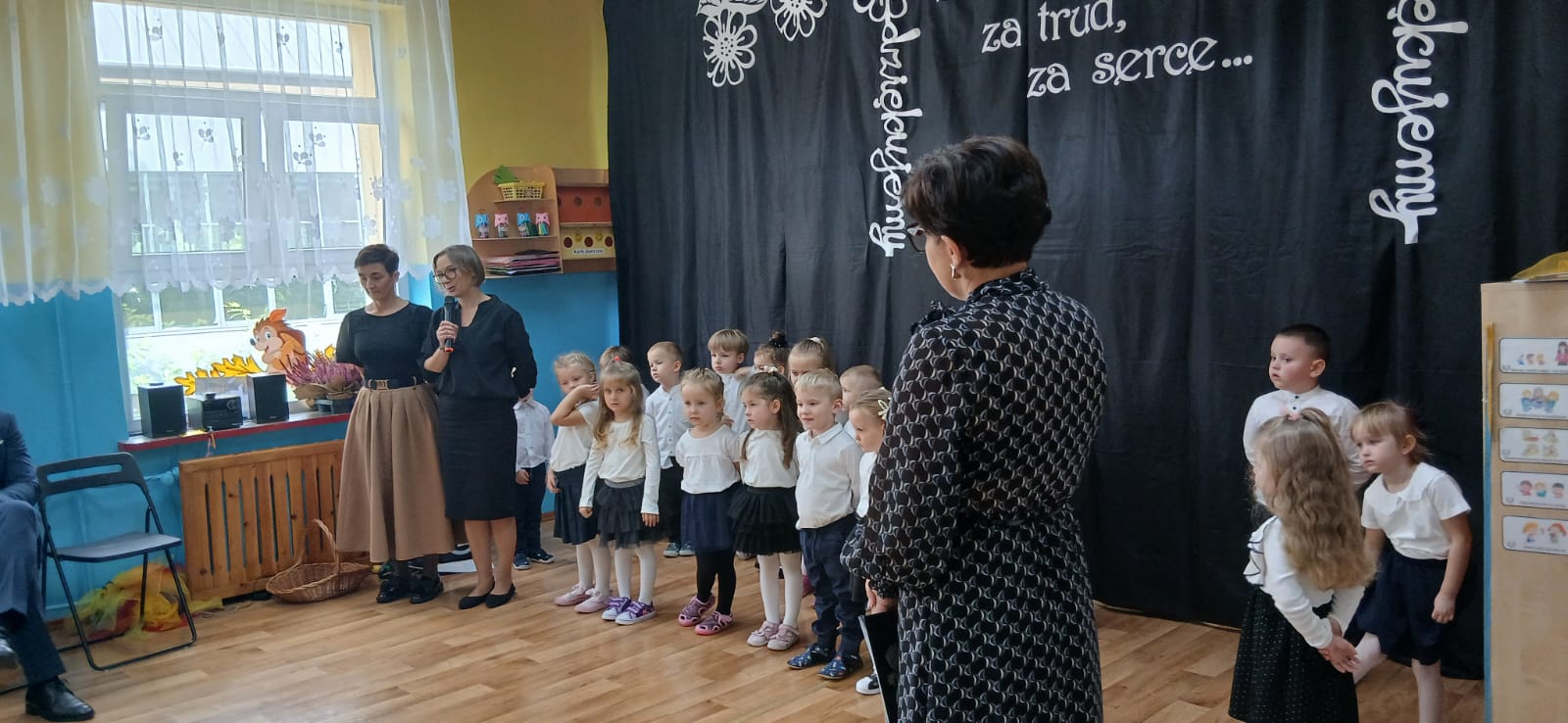 Podczas uroczystości nie zabrakło życzeń, podziękowań i artystycznych występów przygotowanych przez uczniów i przedszkolaków, które wprowadziły wszystkich w wyjątkowy, pełen ciepła i szacunku nastrój.