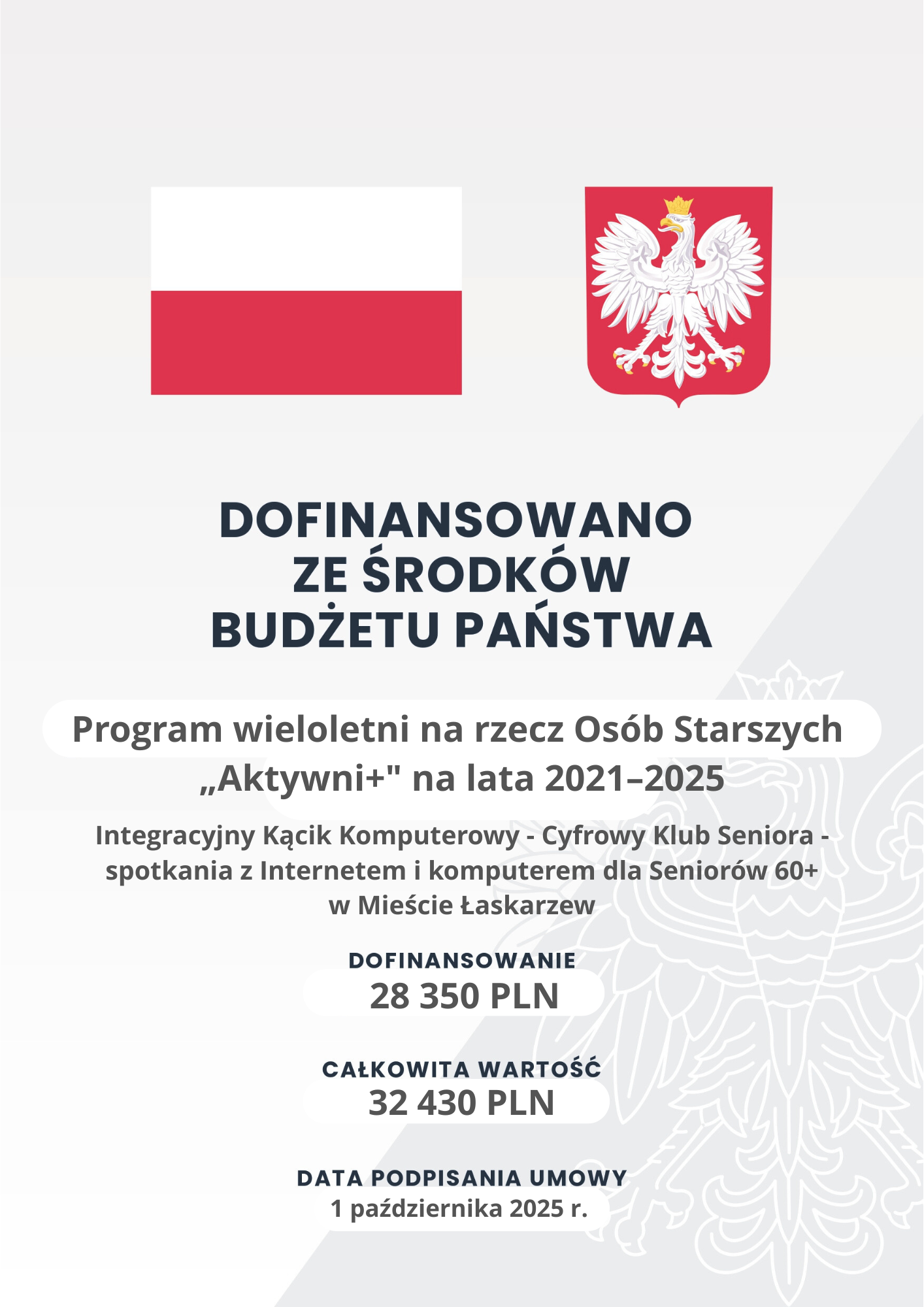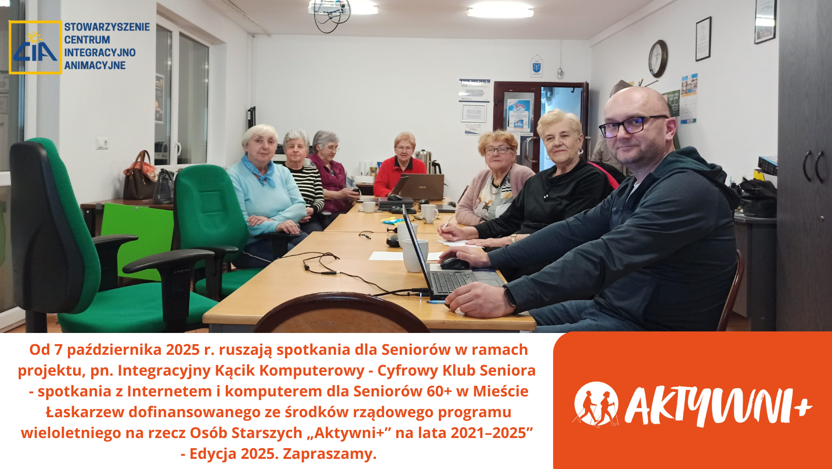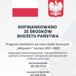 „Integracyjny Kącik Komputerowy – Cyfrowy Klub Seniora – spotkania z Internetem i komputerem dla Seniorów 60+ w Mieście Łaskarzew”.