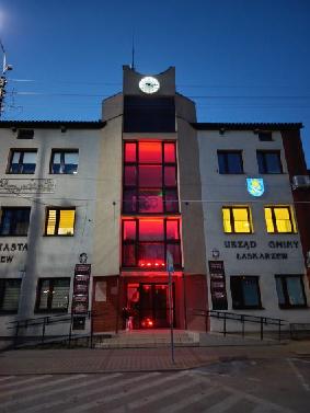 Budynek Urzędu Miasta został podświetlony na czerwono jako symbol solidarności z dziećmi doświadczającymi przemocy i wyraz naszego sprzeciwu wobec krzywdzenia najmłodszych.