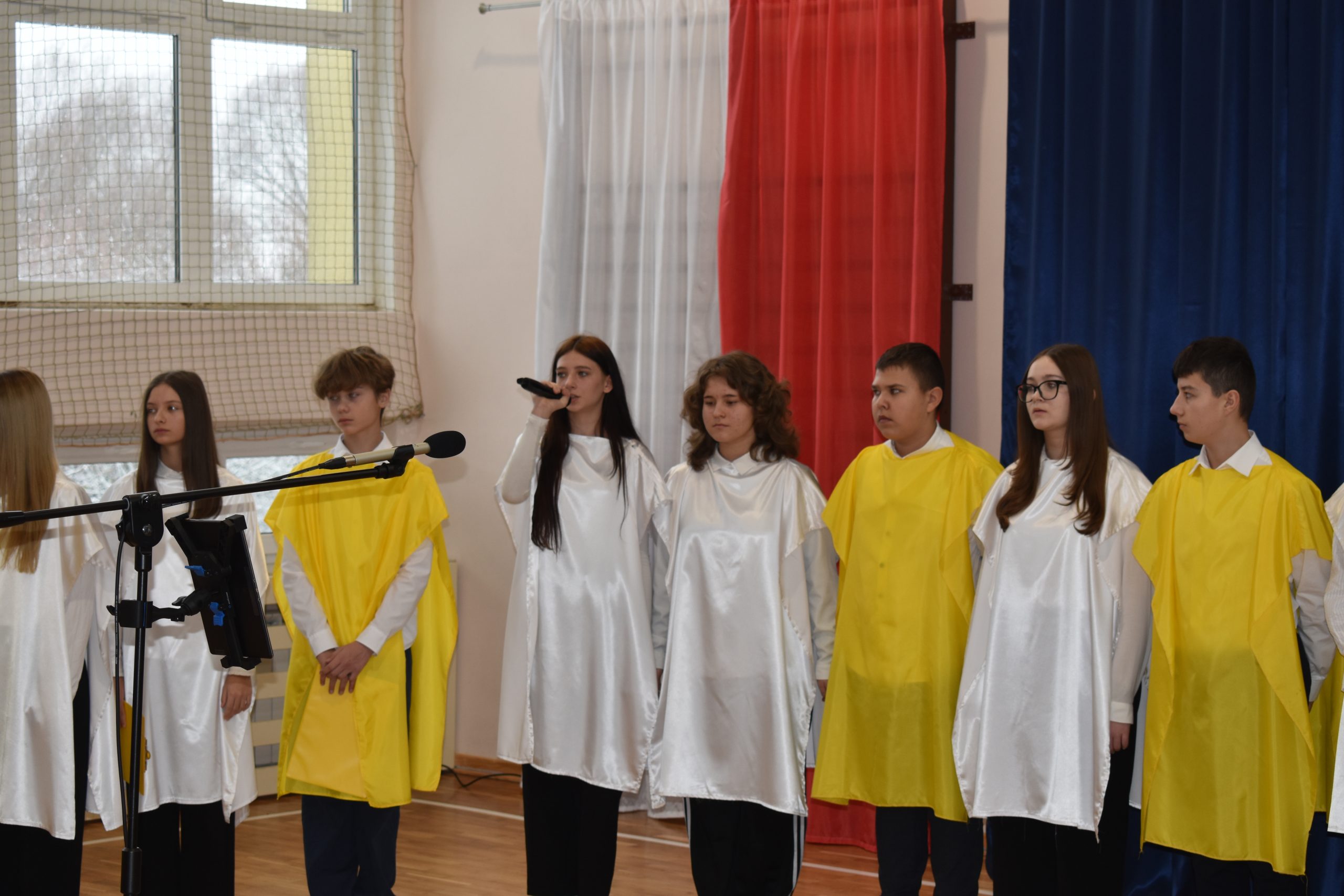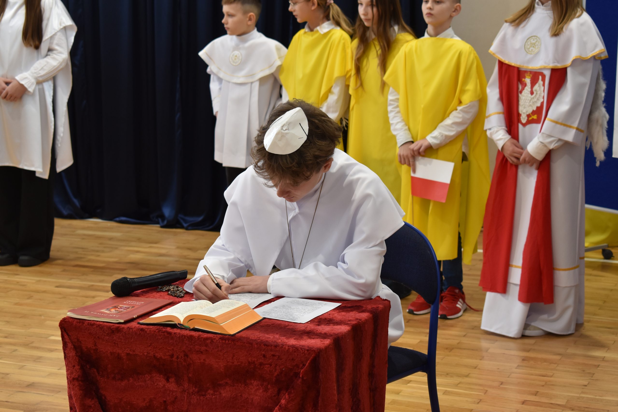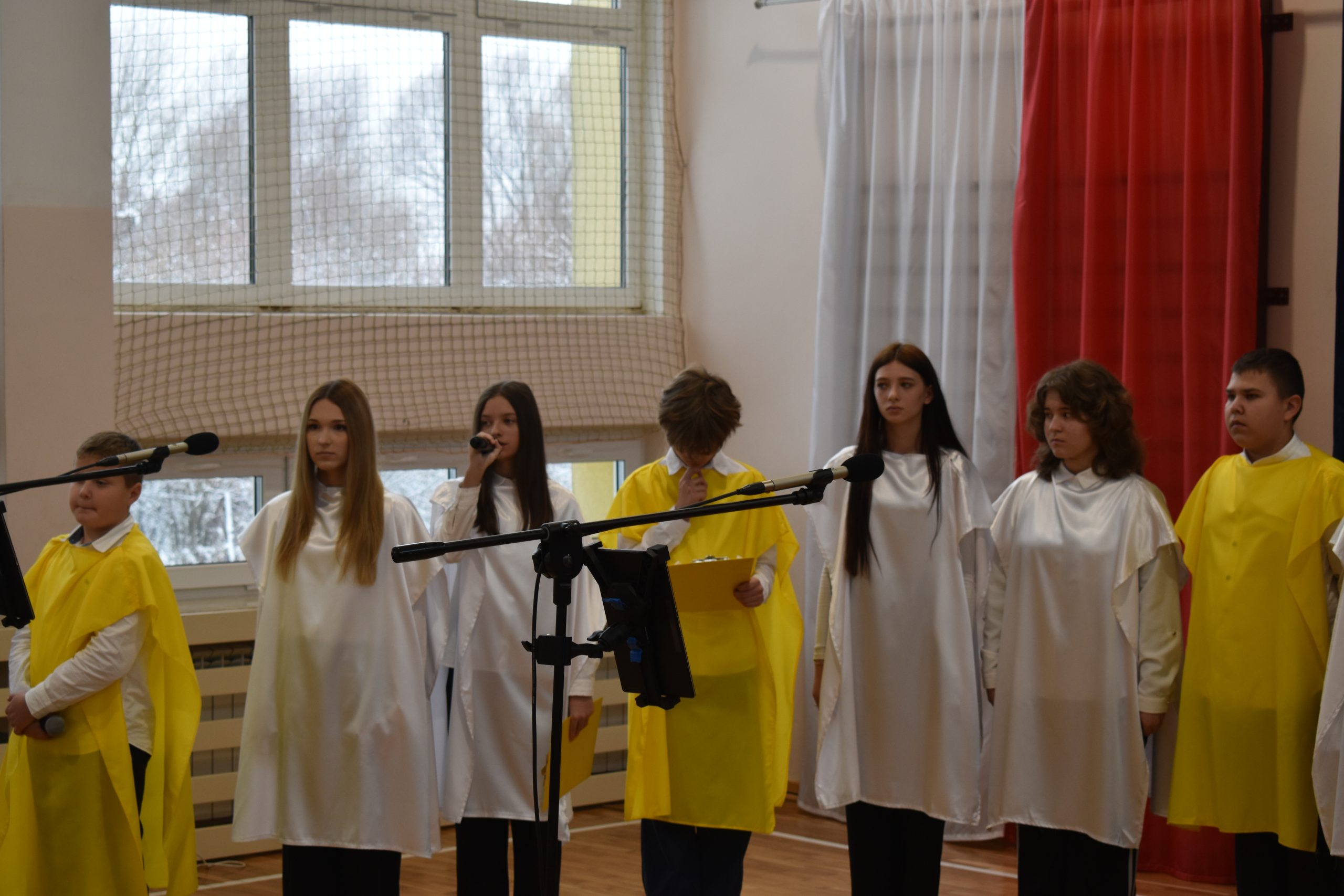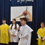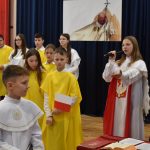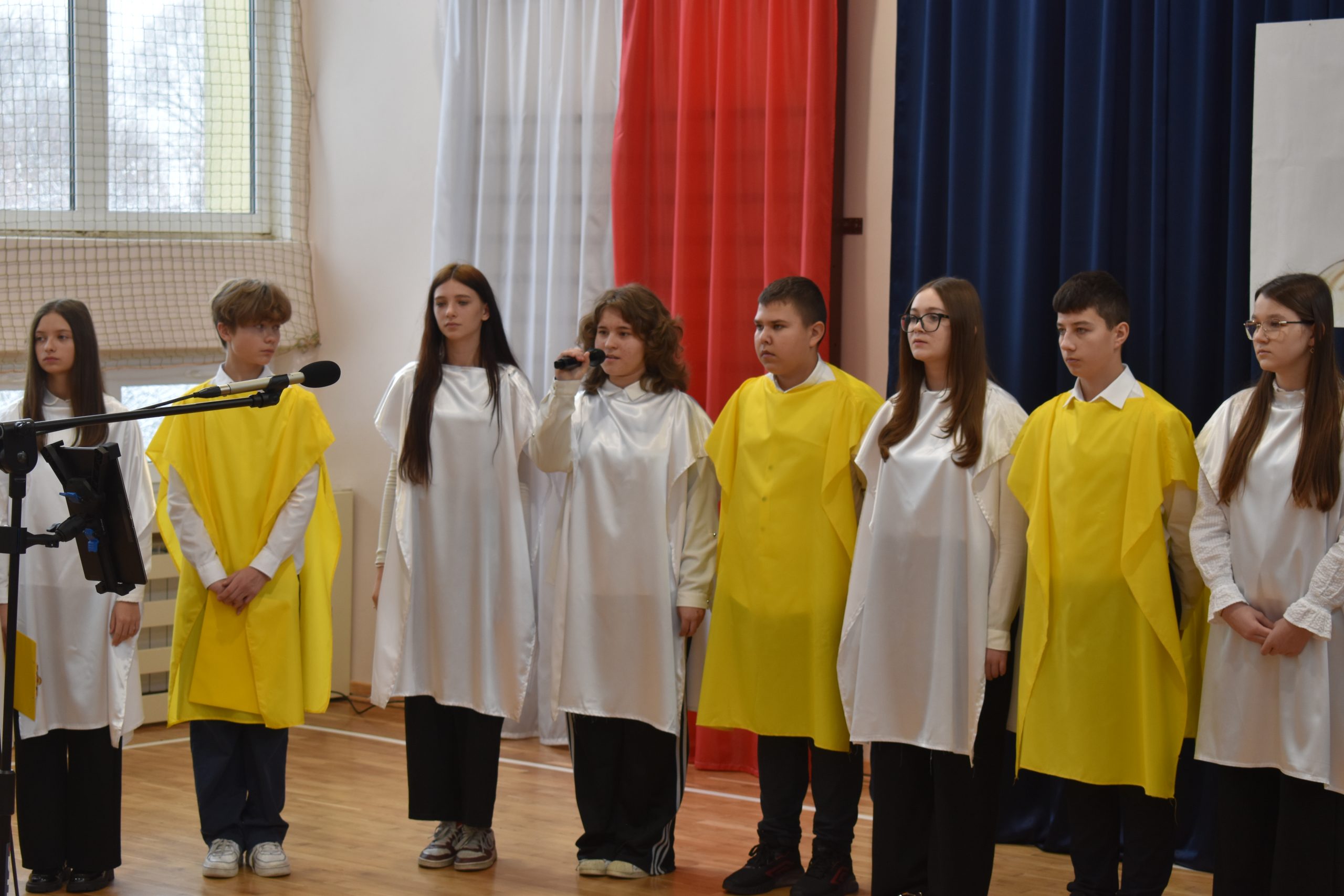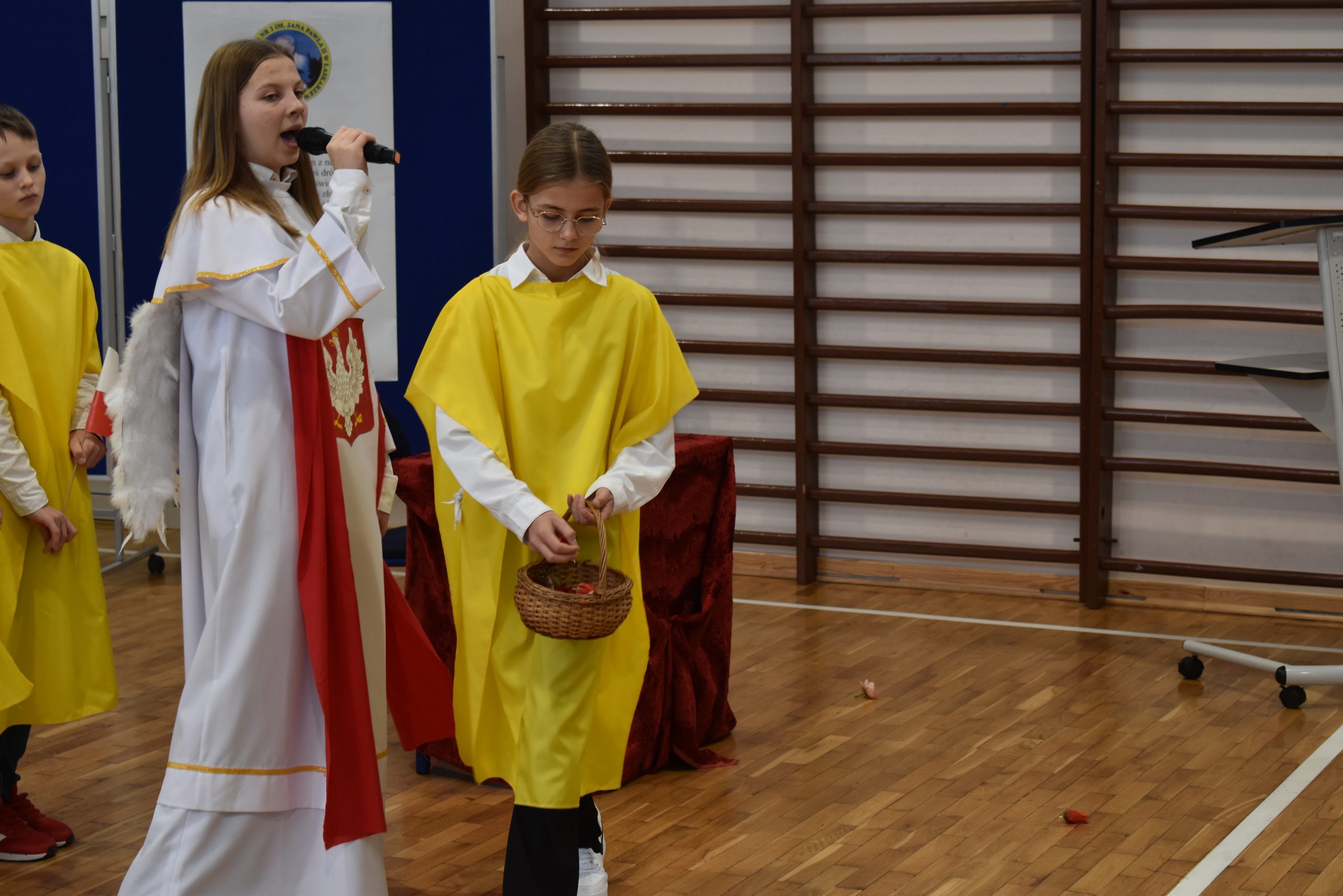 Uroczystość rozpoczęła się powitaniem delegacji szkół, po którym zaprezentowano część artystyczną przygotowaną przez uczniów gospodarzy. Program nawiązywał do życia i przesłania Jana Pawła II, podkreślając jego rolę jako autorytetu moralnego, orędownika pokoju i dialogu oraz przewodnika młodzieży. Młodzi artyści, poprzez recytacje, śpiew i krótkie sceniczne formy, przypomnieli najważniejsze momenty pontyfikatu Papieża Polaka.
