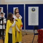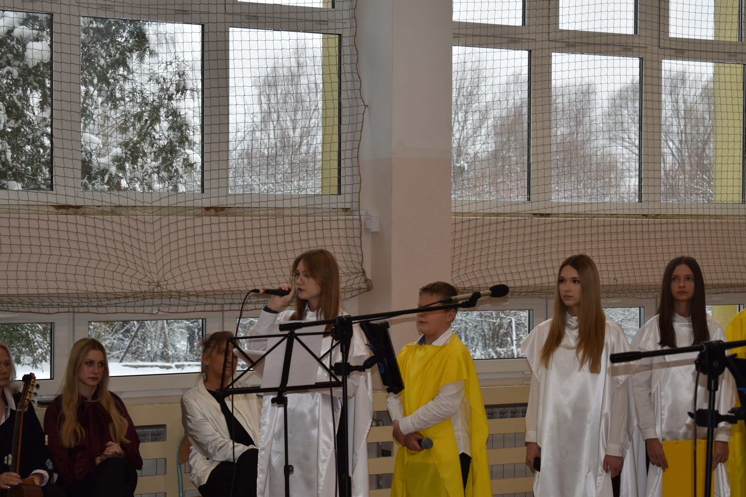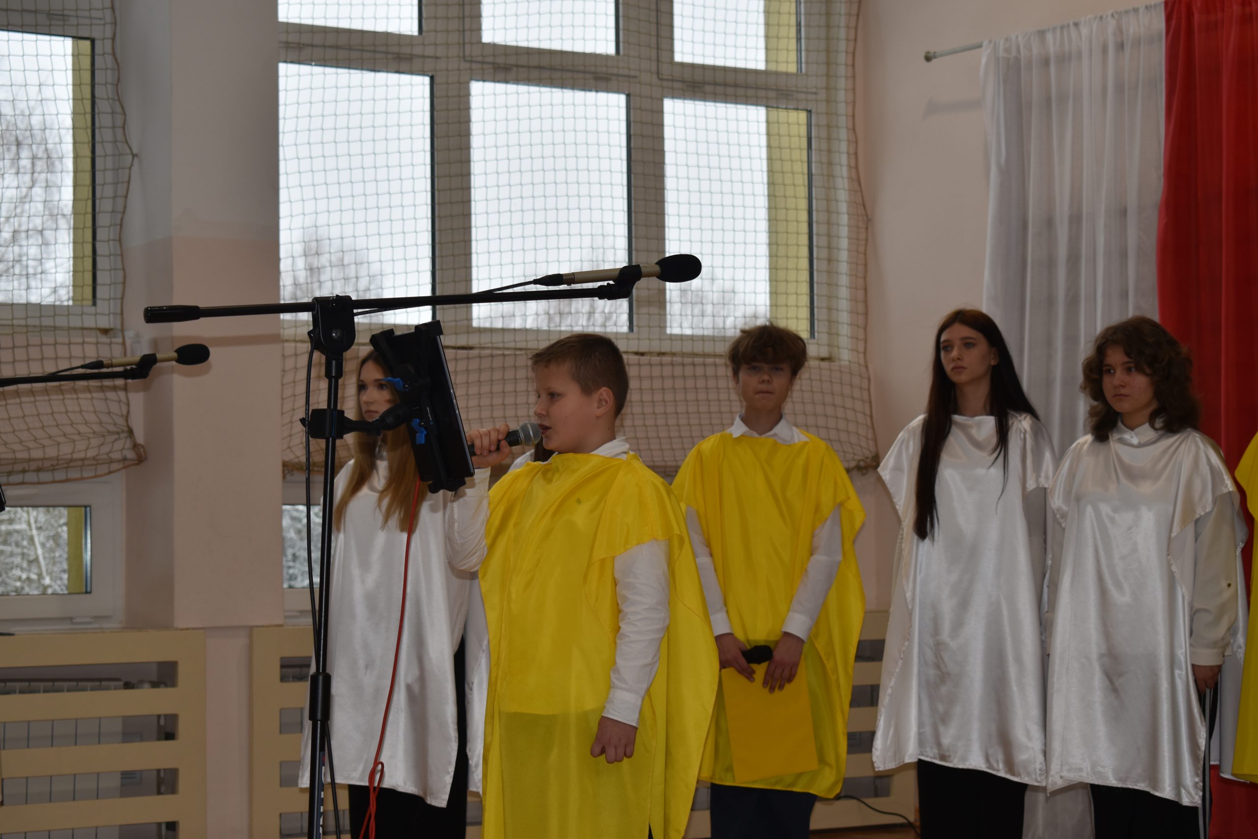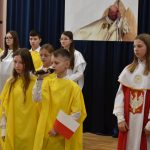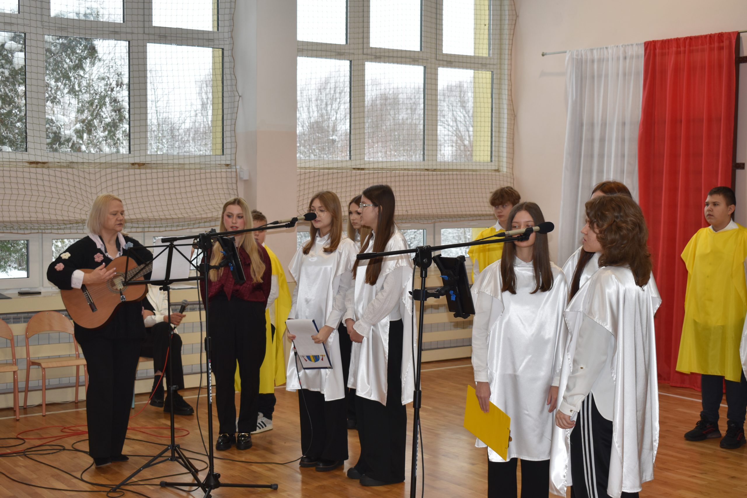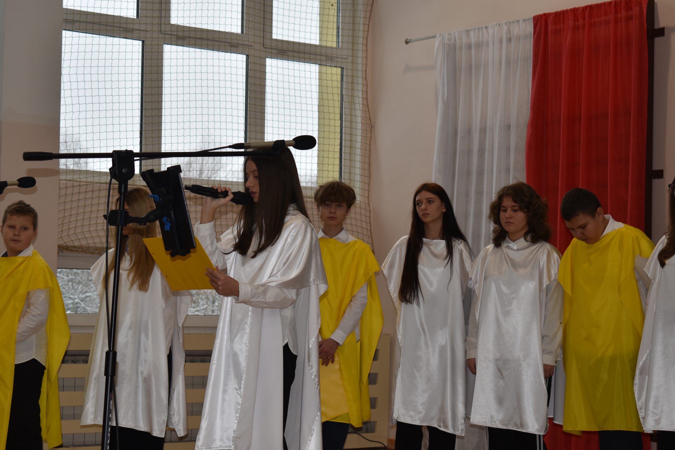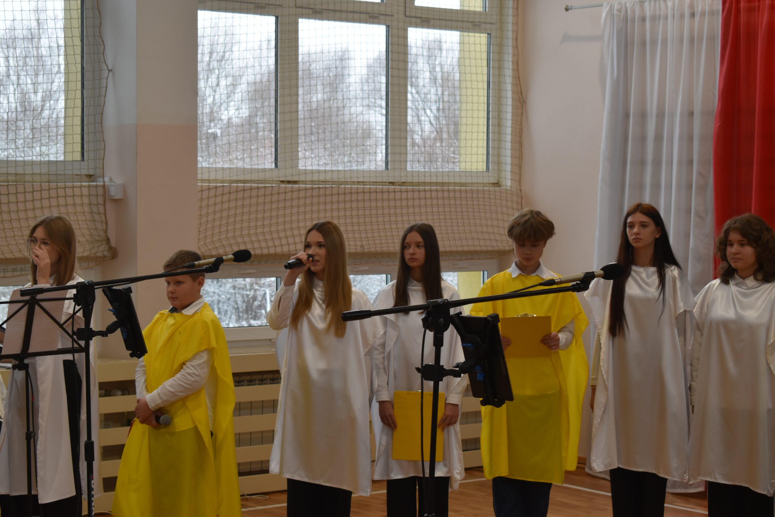 Uroczystość rozpoczęła się powitaniem delegacji szkół, po którym zaprezentowano część artystyczną przygotowaną przez uczniów gospodarzy. Program nawiązywał do życia i przesłania Jana Pawła II, podkreślając jego rolę jako autorytetu moralnego, orędownika pokoju i dialogu oraz przewodnika młodzieży. Młodzi artyści, poprzez recytacje, śpiew i krótkie sceniczne formy, przypomnieli najważniejsze momenty pontyfikatu Papieża Polaka.