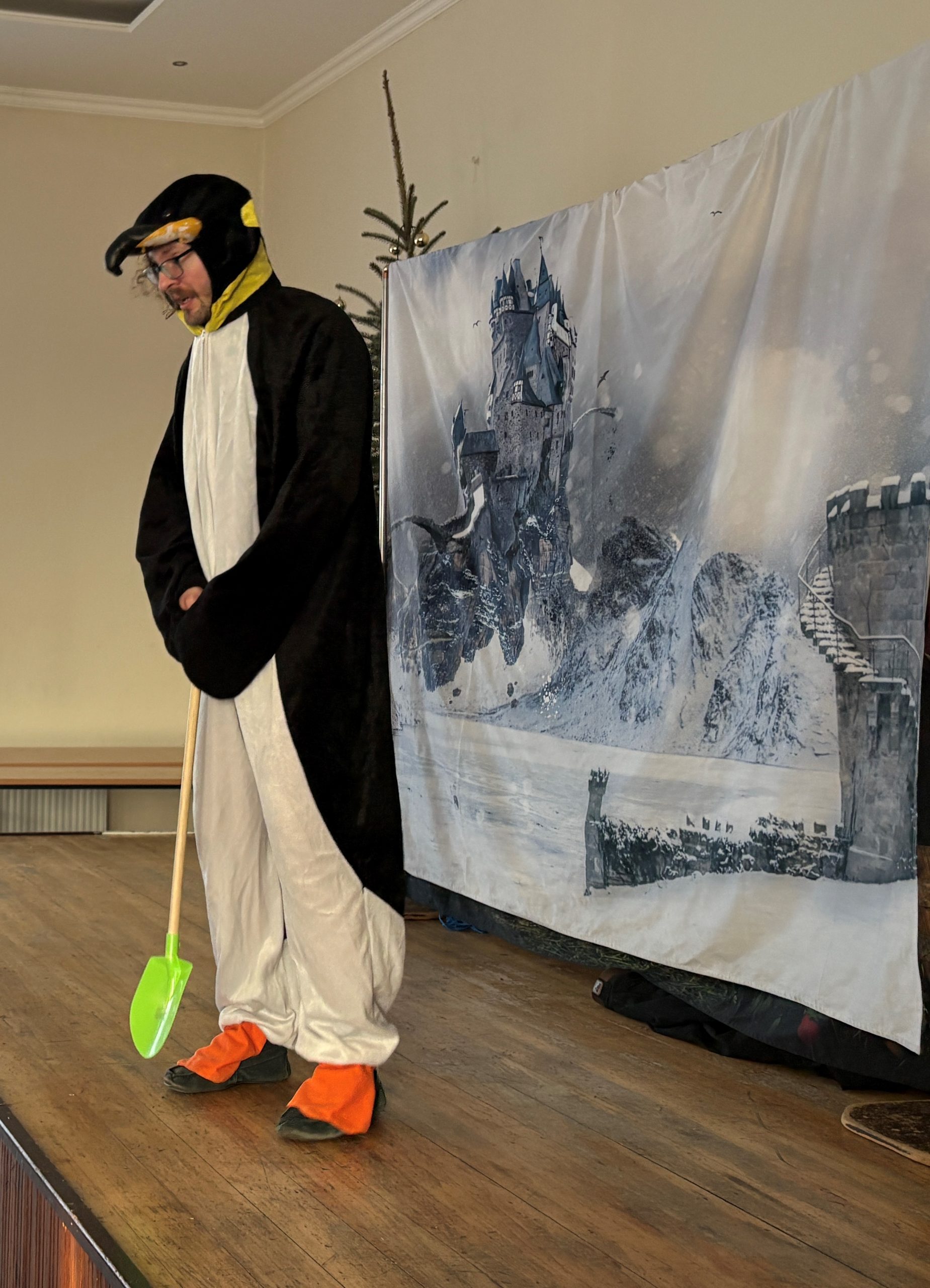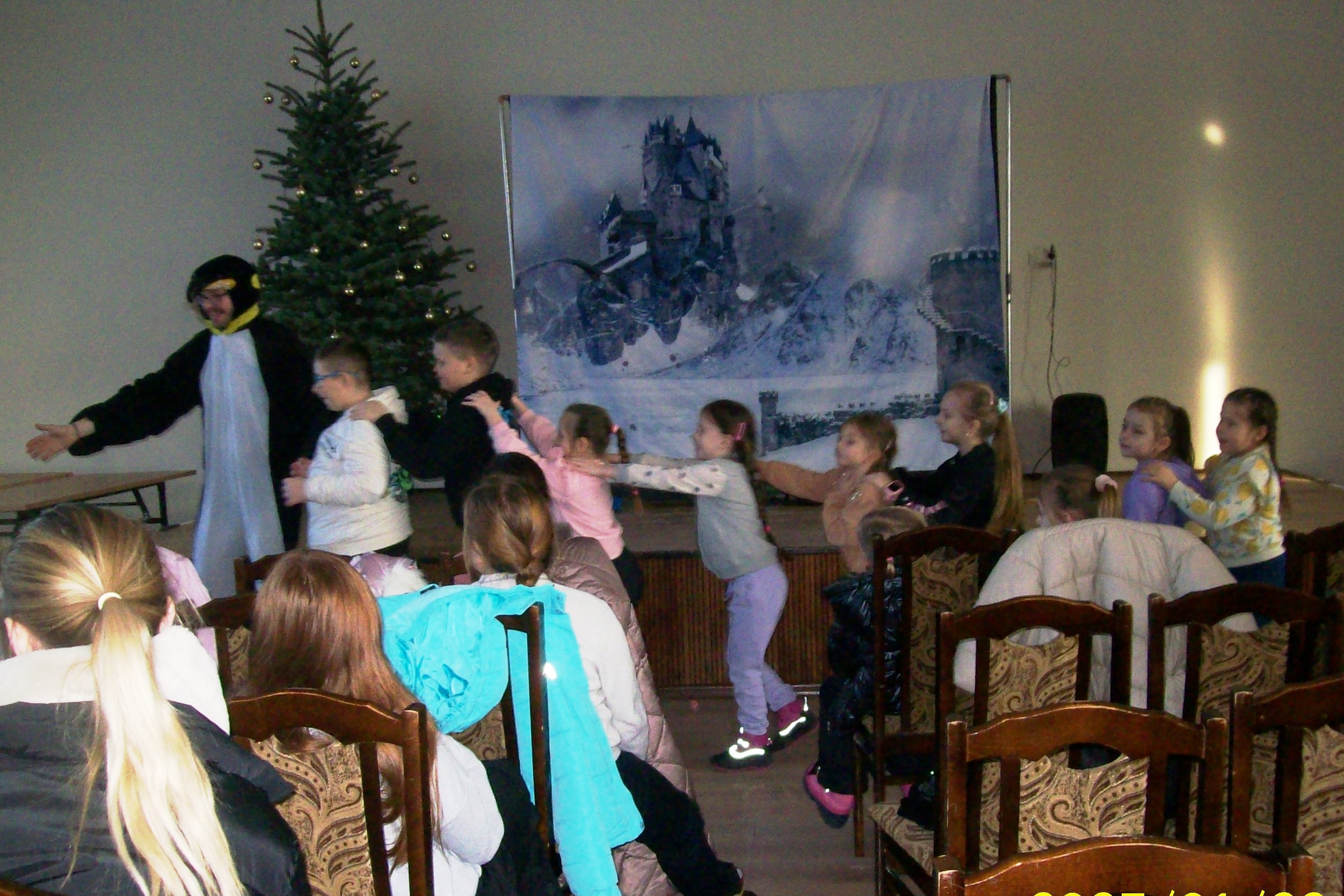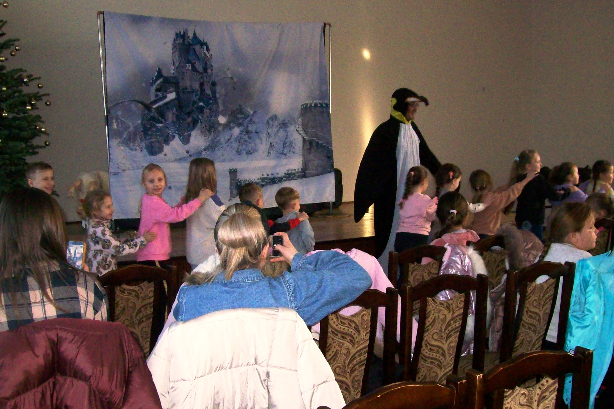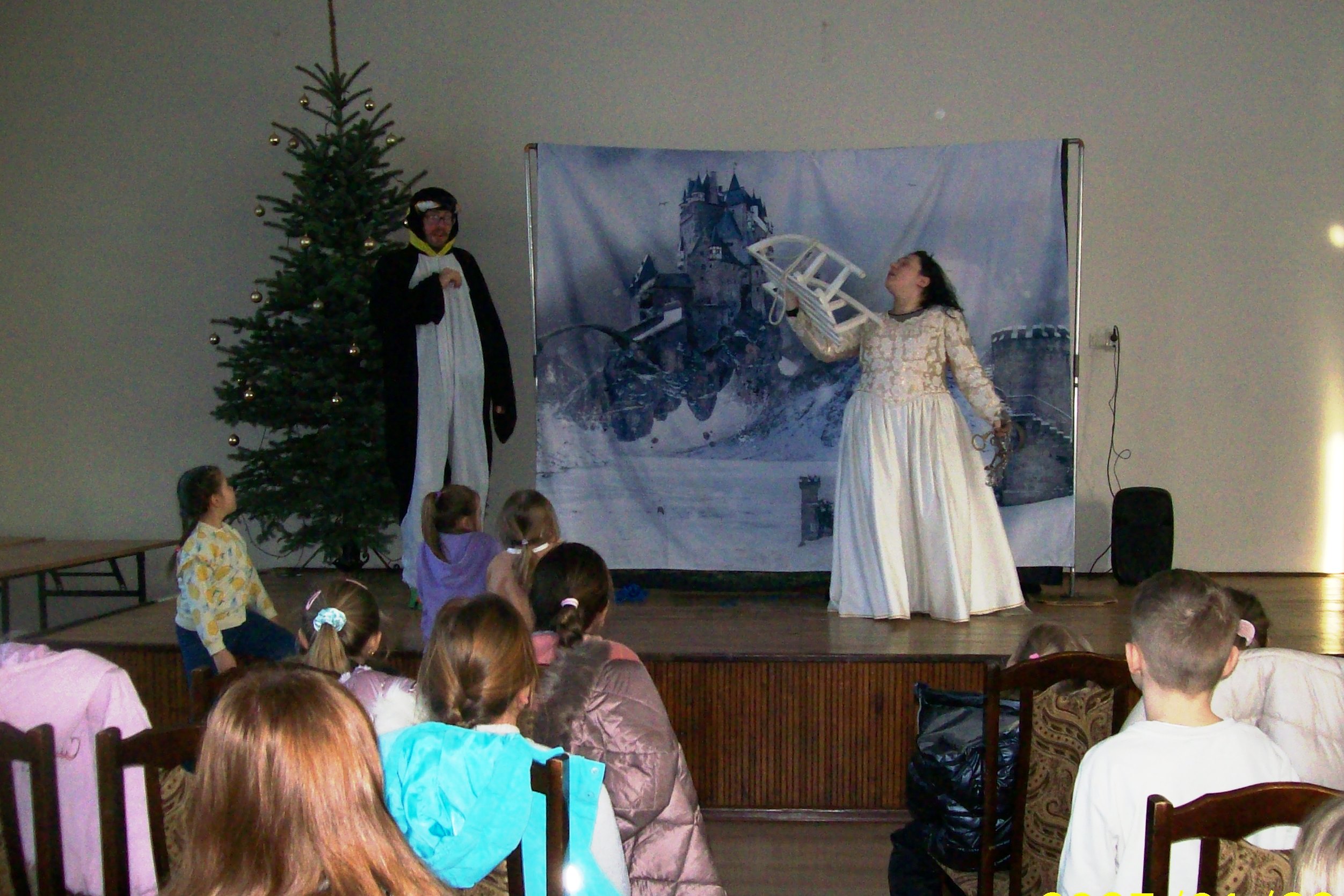 22 stycznia 2026 roku Miejska Biblioteka Publiczna gościła aktorów teatru „Krak-Art” z Krakowa ze spektaklem „Zimowa opowieść”. Ta pełna magii i ciepła historia przeniosła dzieci w zimowy świat wyobraźni, przyjaźni i małych cudów. W odległej Krainie Magii żył sobie elf Chichotek , który uwielbiał robić wszystkim żarty. Mieszkańcy magicznej krainy ciągle na niego narzekali. Często zdarzało się, że jego żarty wcale nie były takie śmieszne. Któregoś razu zabrał różdżkę Wróżce, która zamieniła go za karę w śmiesznego, niezdarnego pingwina i wysłała do Lodowej Krainy. Rządziła tam Śnieżna Królowa, która kazała wszystkim mieszkańcom ciężko pracować. Porządku w krainie pilnował strażnik królowej – leniwy Niedźwiedź Polarny. Zaczarowany elf-pingwin poznał Renifera, który też był tam za karę i bardzo tęsknił za domem. Pingwinek postanowił mu pomóc. Udało im się uciec z niewoli u królowej, ale po powrocie do domu Pingwinek był smutny, bo chciałby znowu być elfem. Jak to w bajkach bywa, wszystko dobrze się skończyło, wróżka przywróciła Chichotkowi dawną postać.