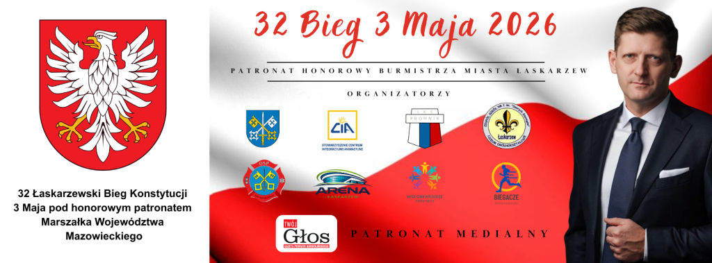 Zbliża się 32. edycja Łaskarzewskiego Biegu Konstytucji 3 Maja – wydarzenia, które na stałe wpisało się w sportowy i patriotyczny kalendarz naszego miasta. Tegoroczny bieg nie mógłby się odbyć bez zaangażowania i wsparcia wielu organizacji oraz instytucji.